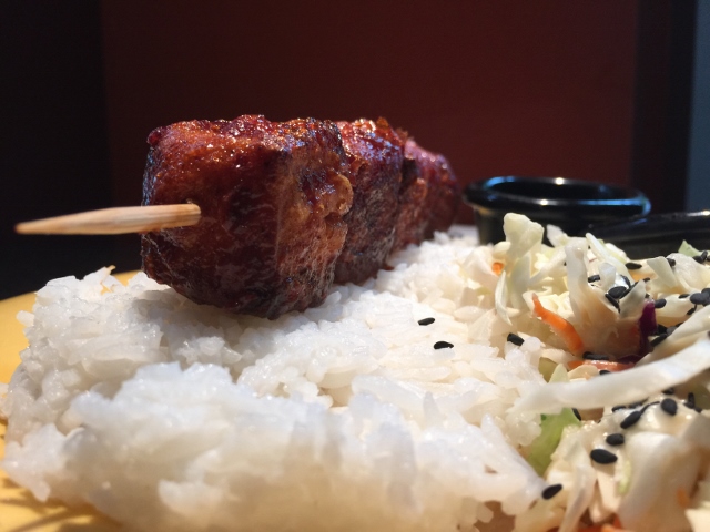 If you ask a skilled and seasoned BBQ man what his secret is, he’ll often say it’s the sauce. So I’d argue that the sauce is really the key to the whole BBQ experience and the protein you spread it on can vary. A good sauce makes a better pork chop just like it makes a better tofu skewer. And Cafe Yumm has figured this out.