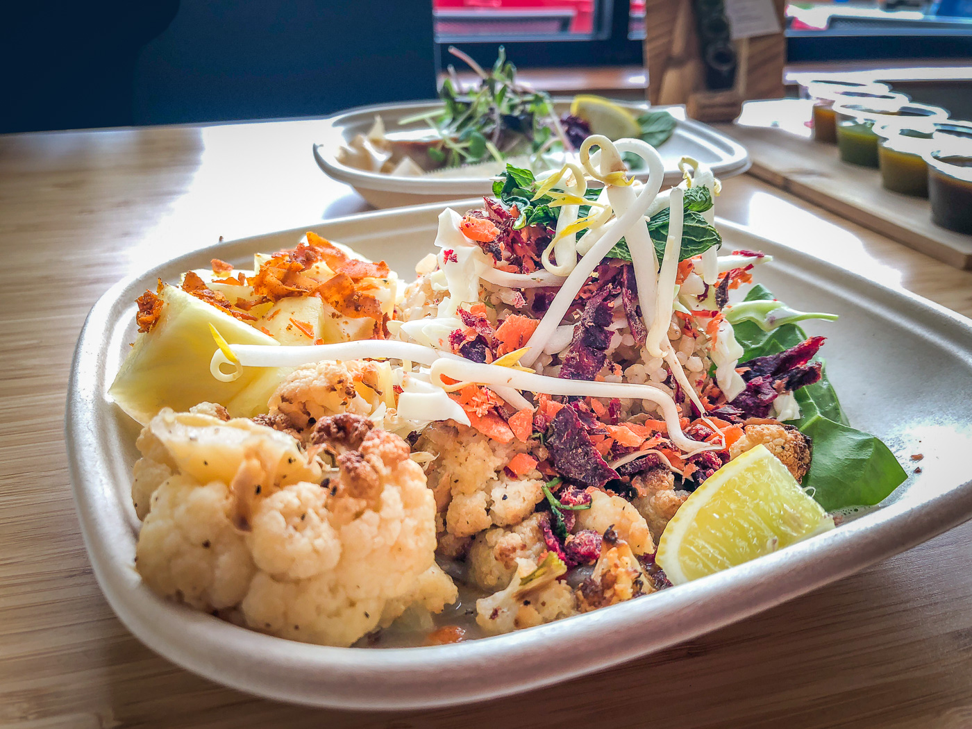 Depending on which of the available sauces you chose this could be a completely different dish. The options are coconut curry slurry, almond tamari cream, or spicy green. And if you’re not satisfied with the portion of sauce they serve you, you can help yourself to more, self-serve style!