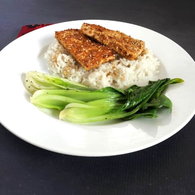 Hello Fresh Sesame Crusted Tofu with Spicy Peanut Sauce and Garlic Bok Choy